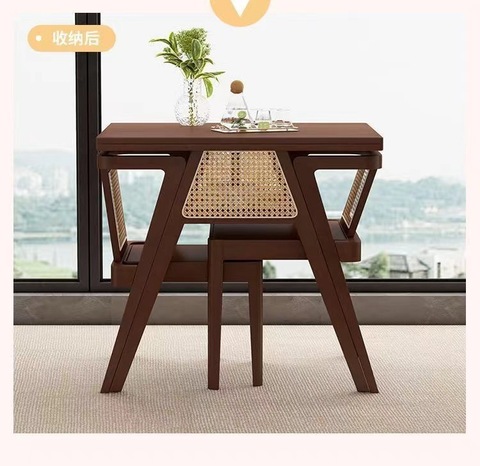 Solid Wood Balcony Dining Table with Rattan Chairs Small Coffee Tea Set for Leisure Courtyard Negotiation Stackable Storage