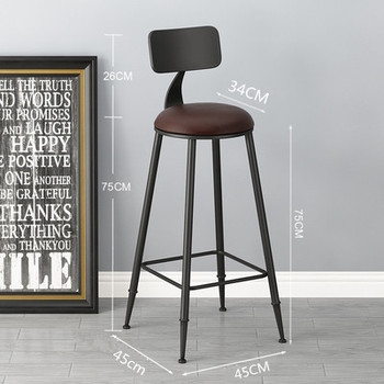 Bar Chair, High Stool, Backrest Pub Stool, Iron Front Desk High Chair, Minimalist Home Bar Seat
